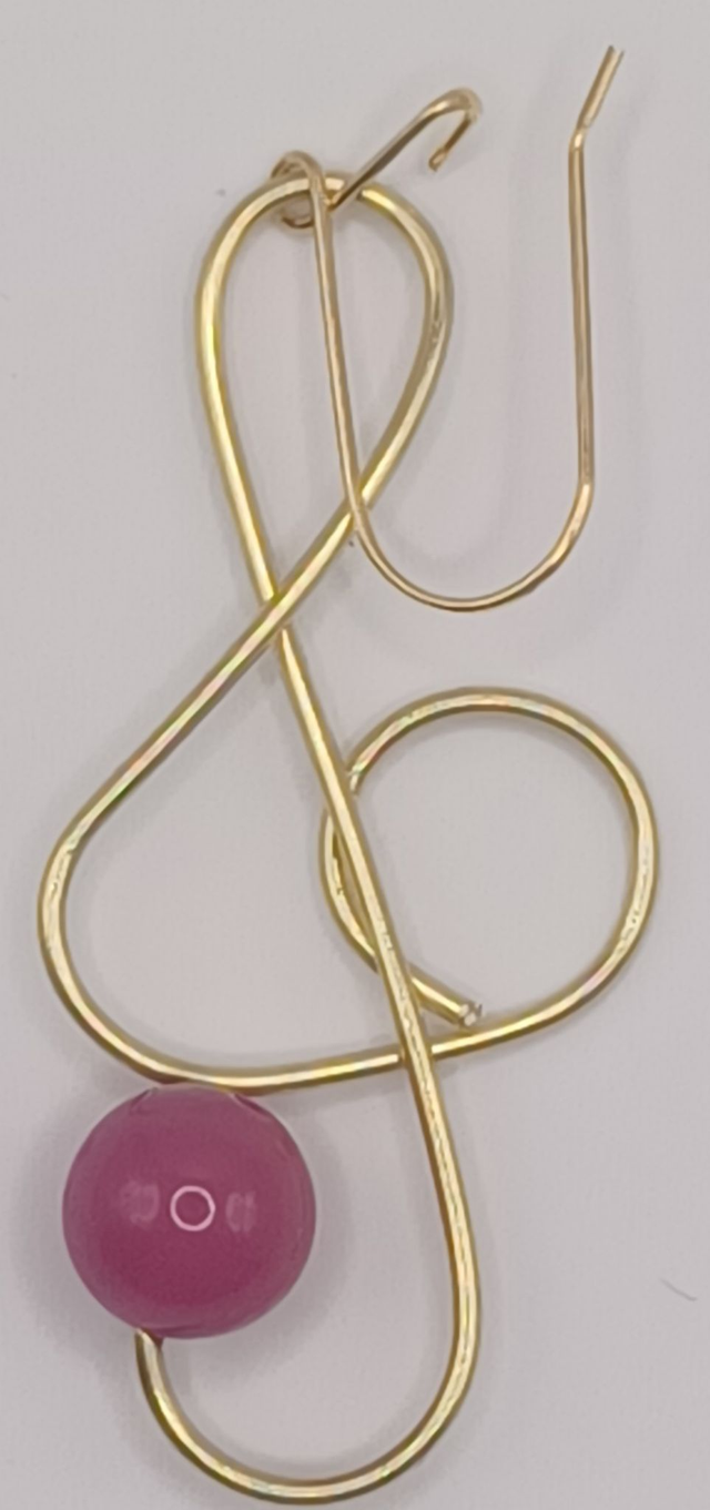 Boucles d'oreilles "Chiave di Violino " en fil de laiton de bijoutier et perles naturelles d'Agates .