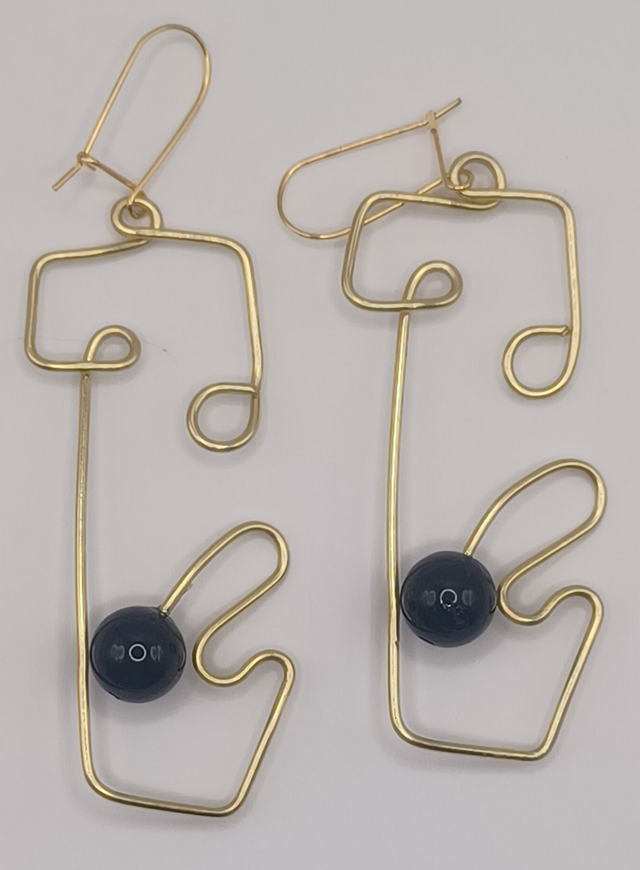 Boucles d'oreilles "Cocteau" en fil de laiton de bijoutier et perles naturelles d'Onyx .