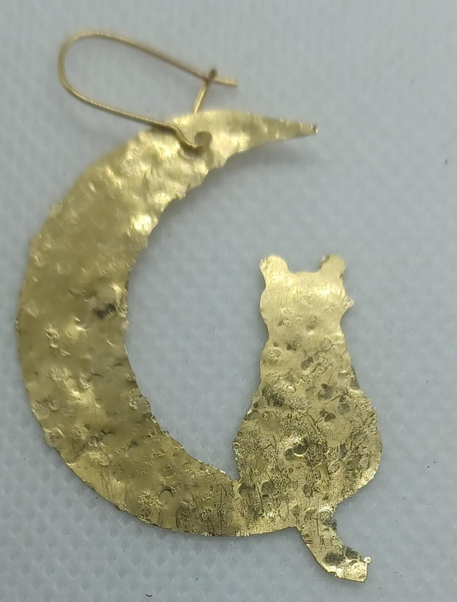 Boucles d'oreilles "Chats dans la lune" en laiton de bijoutier martelé.