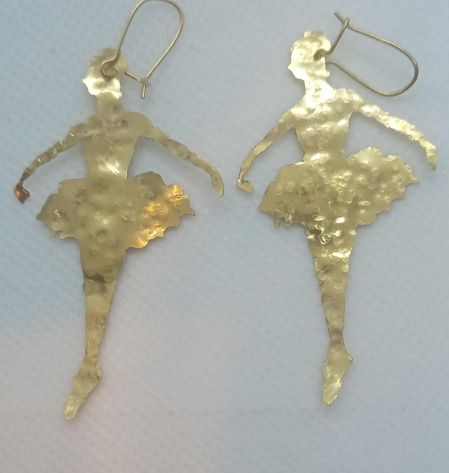 Boucles d'oreilles "Danseuses" en laiton de bijoutier martelé.