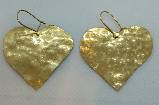 Boucles d'oreilles "Amour" en laiton de bijoutier martelé.