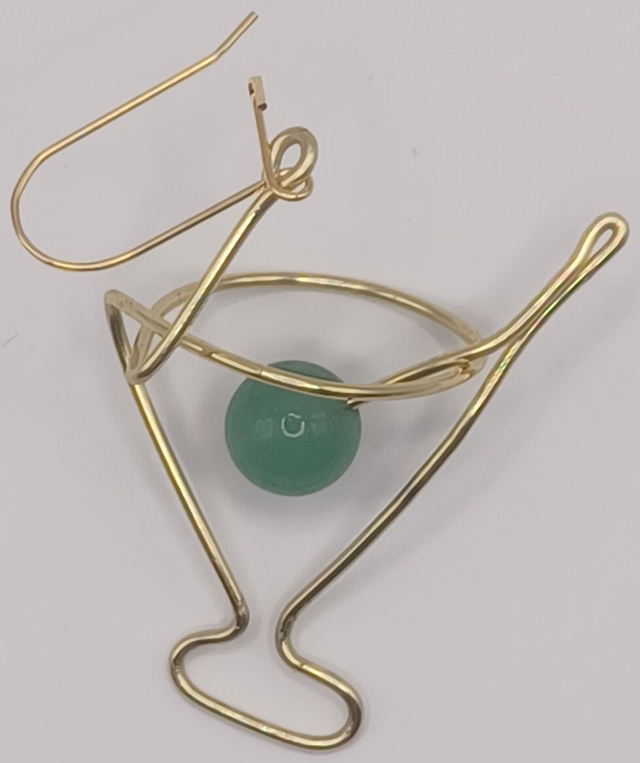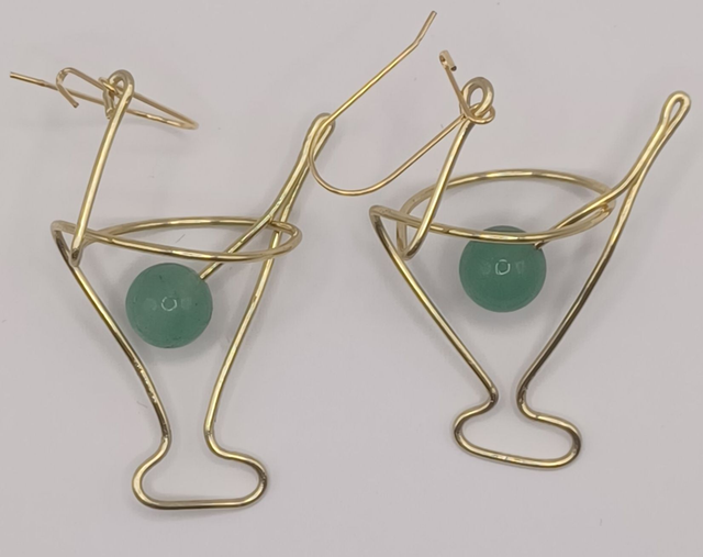 Boucles d'oreilles "Cups" en fil de laiton de bijoutier et perles naturelles d'Aventurine.
