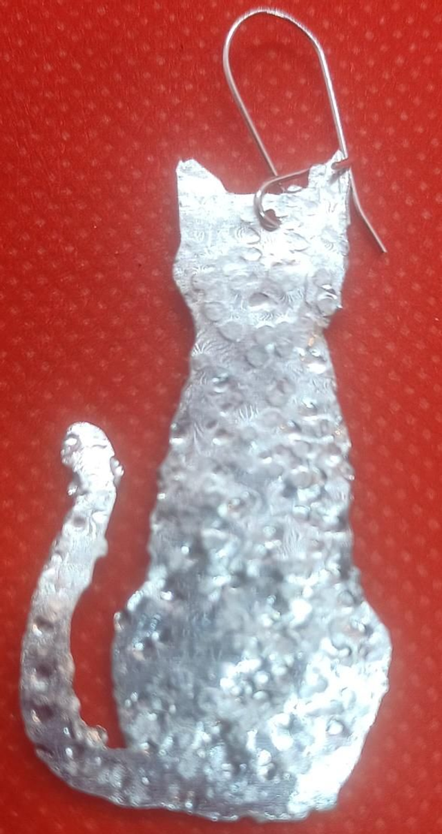 Boucles d'oreilles "Chatons" en aluminium pur de bijoutier martelé.