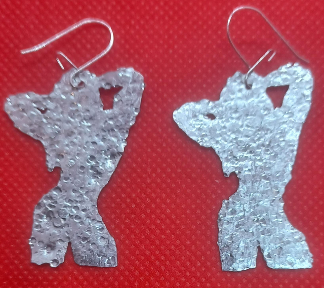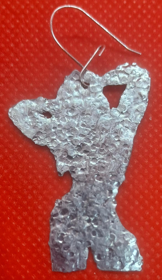 Boucles d'oreilles "Petites Pin-ups" en aluminium pur de bijoutier martelé.