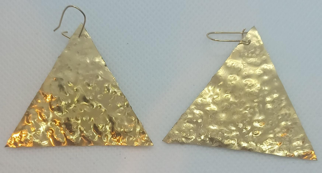Boucles d'oreilles en laiton de bijoutier martelé.